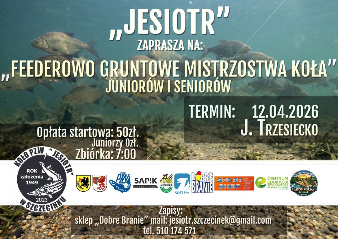 Zarząd koła PZW NR.72 „ Jesiotr ” Szczecinek serdecznie zaprasza na MISTRZOSTWA KOŁA Juniorów oraz Seniorów metodą feeder – grunt na jedną wędkę. Zawody rozpoczną się w dniu 12.04.2026r. o godzinie 7:00 nad jeziorem TRZESIECKO zgłoszenia udziału można dokonać…